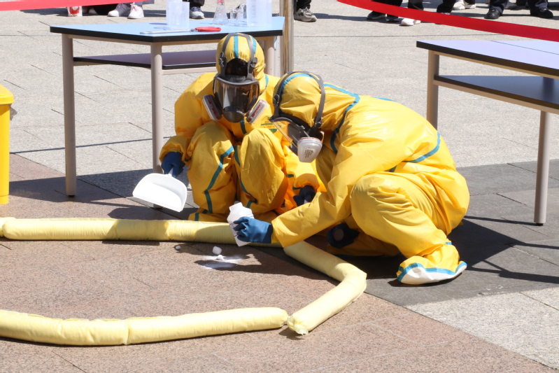本次演练以危化品遗撒事故为模拟场景,系统开展了现场救援处置、人员紧急疏散、警戒区域划定、分级报告程序、个人防护装备使用、危险源控制消除等标准化应急处置全流程演练。参演师生反应迅速、处置规范,充分展现了我校实验室安全管理工作的扎实成效。