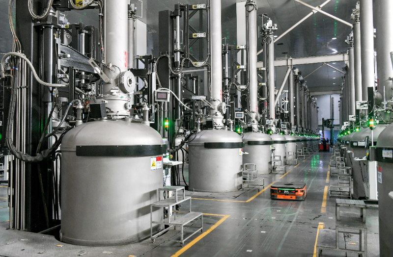 包头市内蒙古鑫元硅材料科技有限公司生产现场,伴随着流化床装置的低鸣声,一粒粒绿豆大小的黑色颗粒硅不断流入存储罐,等待检测合格后打包入库。